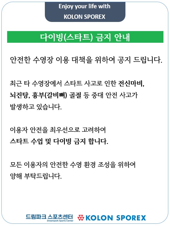 코오롱 스포렉스 인천드림파크점_ 다이빙(스타트) 금지 안내