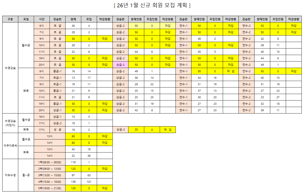 ∙ 진도표 확인 후 진도에 맞는 강습반 등록