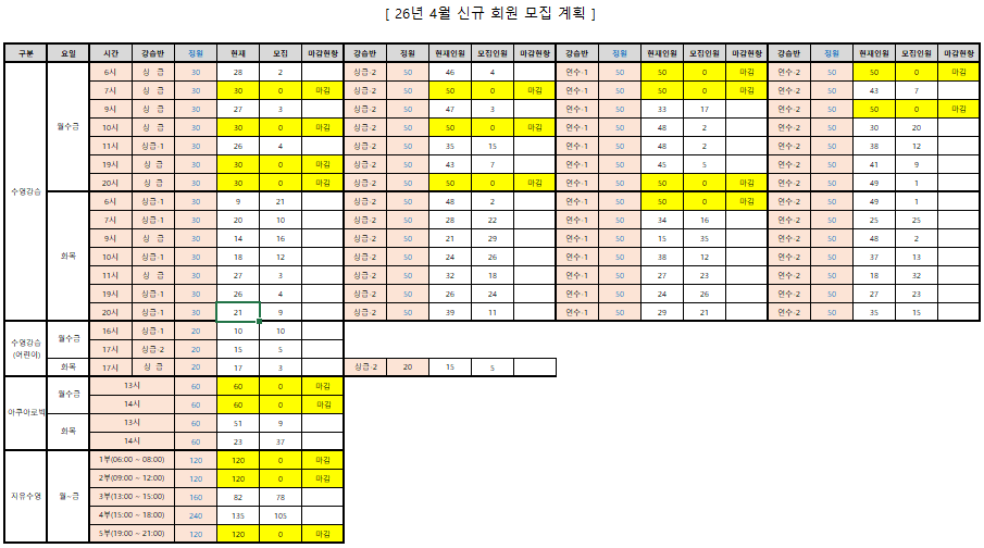 ∙ 진도표 확인 후 진도에 맞는 강습반 등록