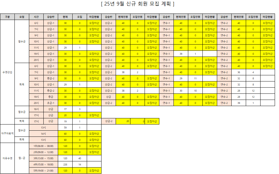 2025년 9월 신규 회원 등록 일정을 다음과 같이 안내드립니다.
