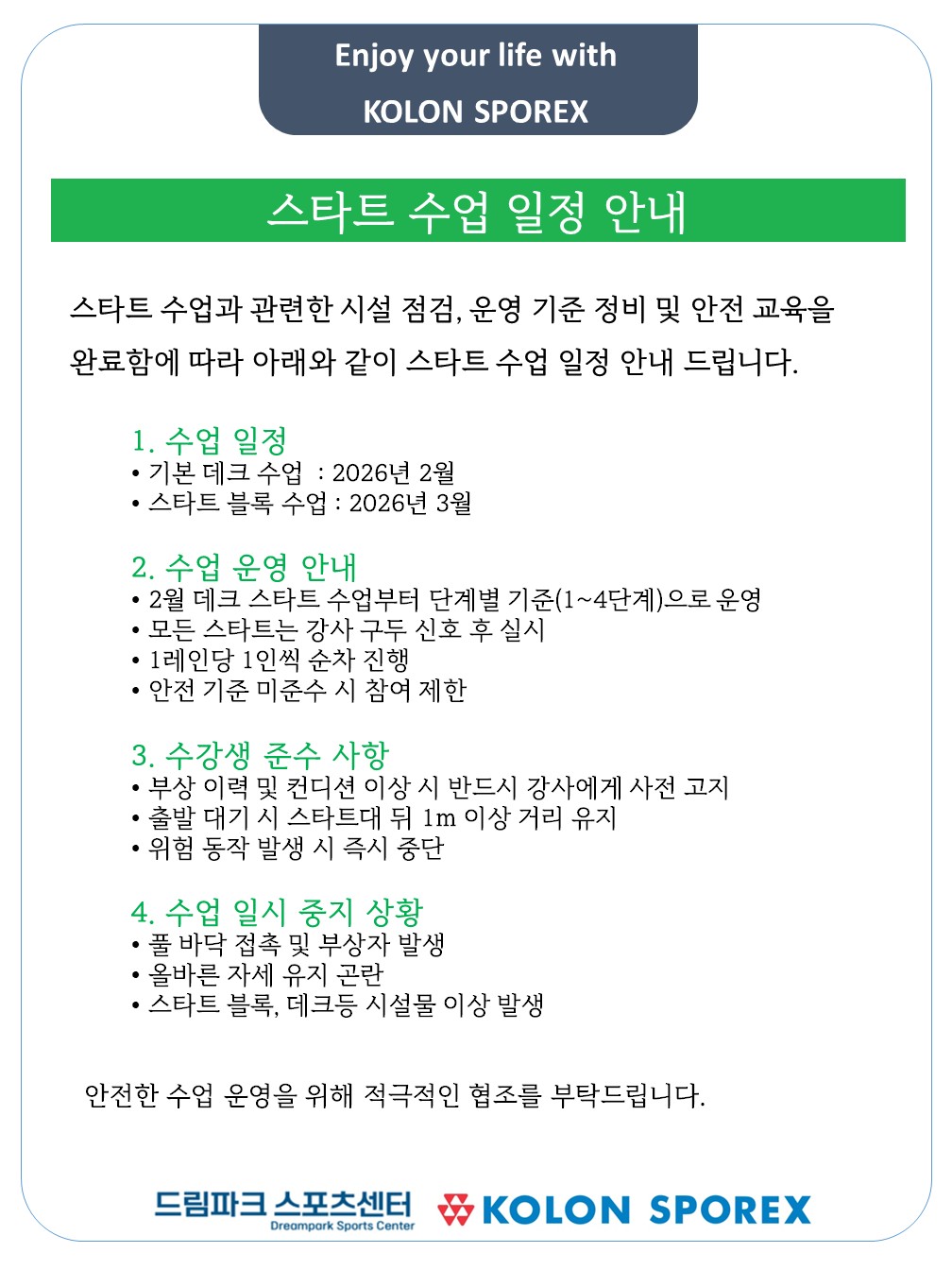 코오롱스포렉스 인천드림파크점 스타트 수업 안내